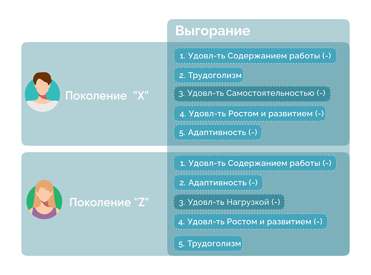 Факторы, предсказывающие выгорание (Поколение X vs зумеры)