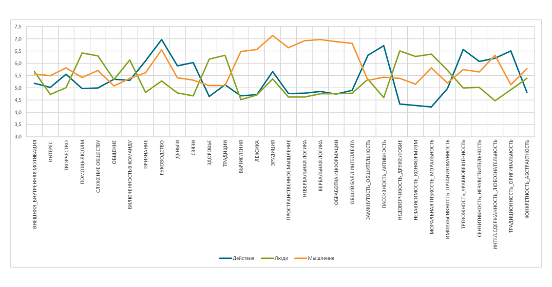 В личностном блоке у топ-руководителей мы также видим прирост по «гуманистическим» шкалам: более высокие показатели дружелюбия, сензитивности, моральности, роли «душа команды», чем у руководителей других групп. Такое сочетание шкал хорошо ложится на современное понимание лидерства в формате «Менеджмент 3.0». Это подход к управлению командами, основанный на создании эффективной среды для совместной работы, сотрудничества, вовлечения и единой системы ценностей.