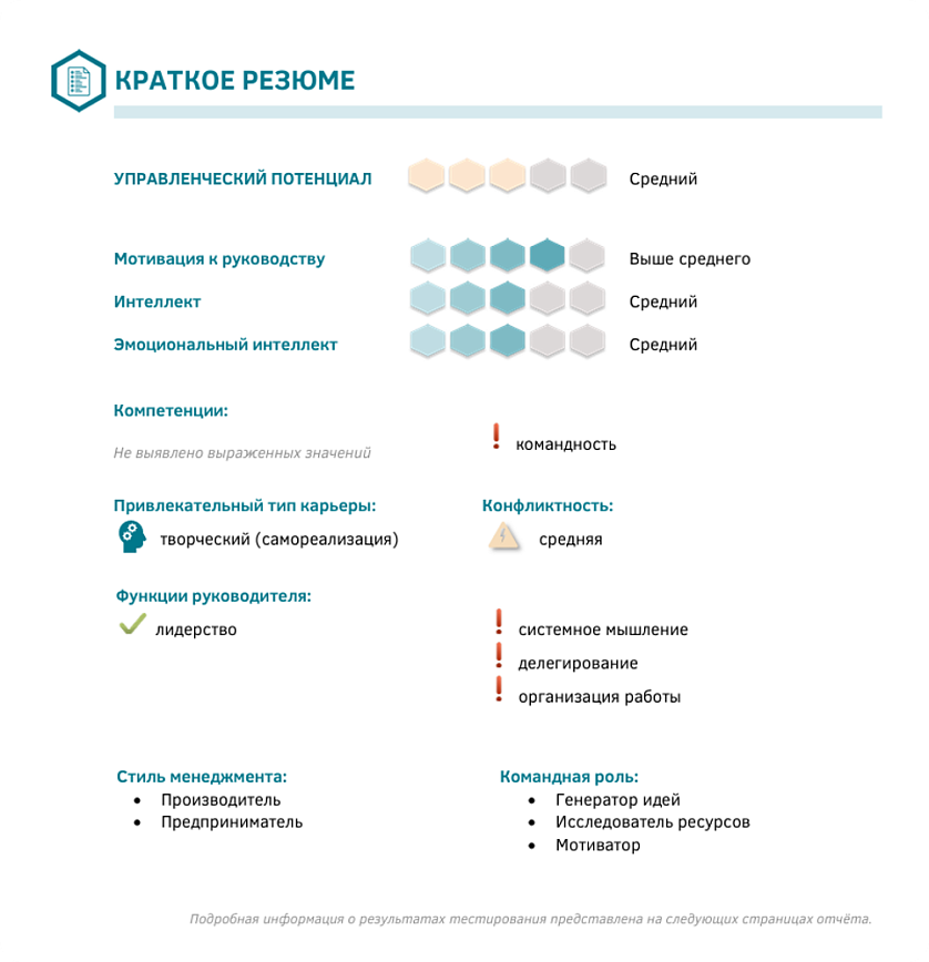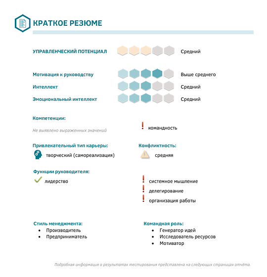Саммари отчёта управленческого потенциала для HR-специалиста