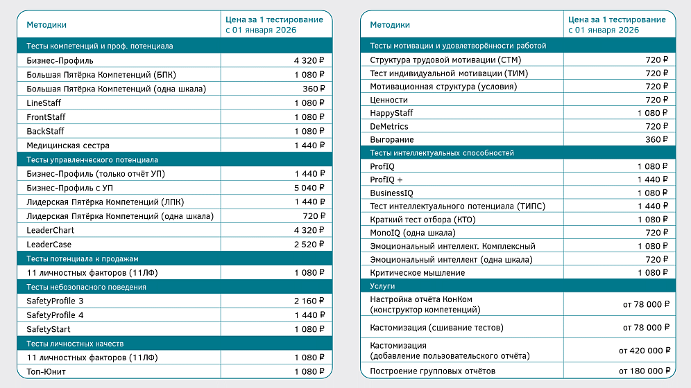 В связи со значительными изменениями в налоговом законодательстве и инфляционными процессами мы вынуждены скорректировать тарифы на наши тесты и услуги.